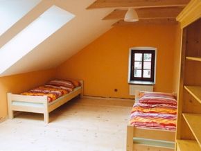 Ubytování v 2 – 7 lůžkových pokojích (postele a palandy) s vlastním či společným příslušenstvím pro dva pokoje. Velmi 0-příjemné prostředí využívající přírodní materiály – dřevo, cihelná dlažba a kámen.